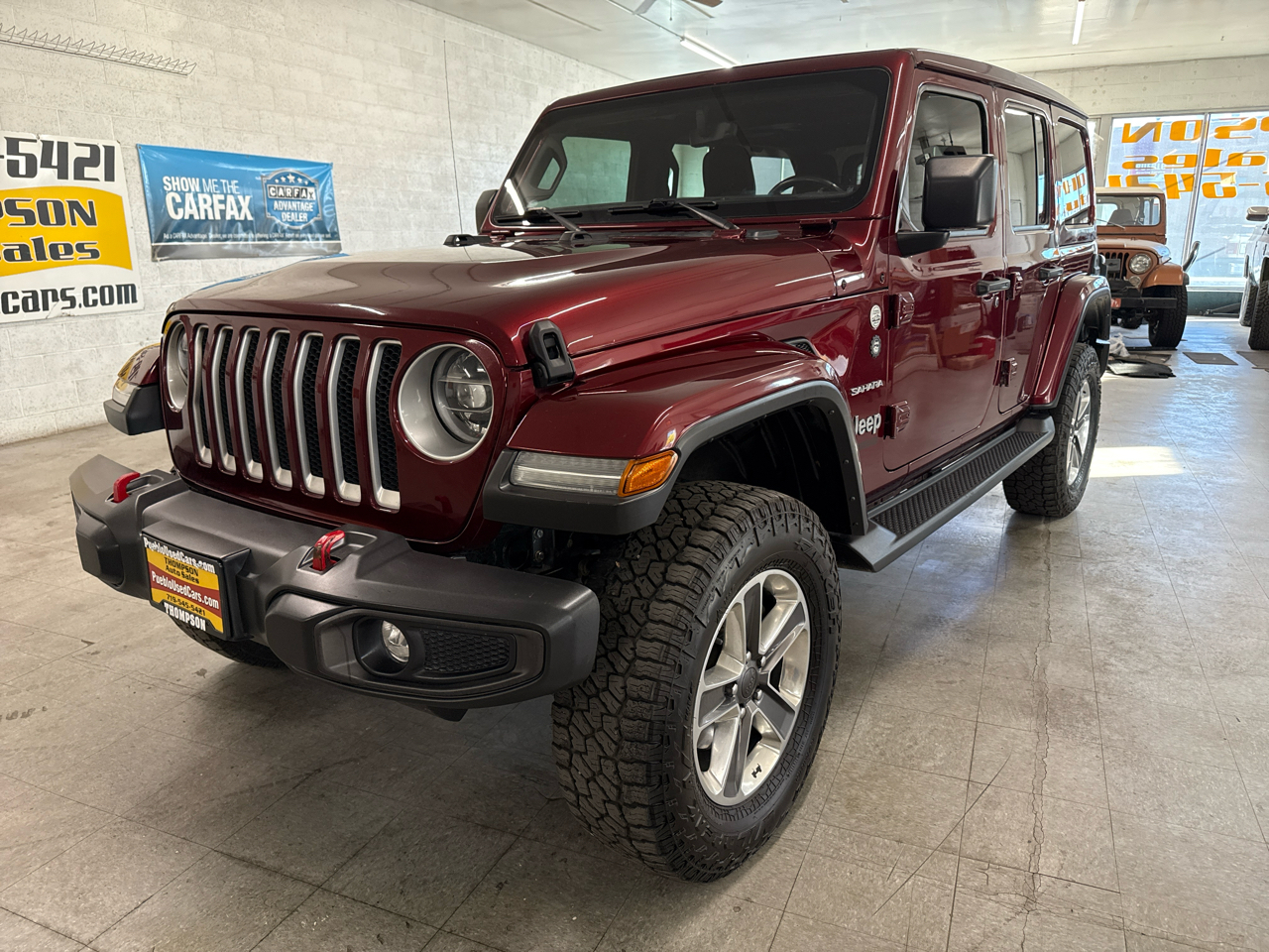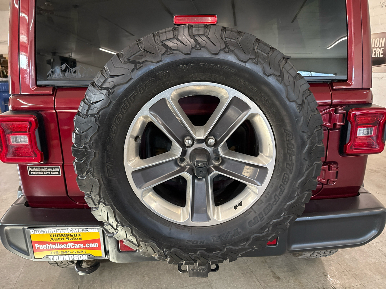 Super Sharp Trail Rated!! 2021 Jeep Wrangler Unlimited Sahara 4WD with the powerful and reliable 3.6L V6, automatic, heated leather, Sky one-Touch power roof, Rubicon Express lift, and much more with only 84k miles. You can view over 90 photos of this Wrangler Unlimited Sahara on our website at PuebloUsedCars.com. The interior of this Wrangler Unlimited Sahara is leather and in excellent shape and all of the power options work properly. The exterior of the Wrangler Sahara is in excellent shape. Wrap yourself in comfort and style and explore all the Colorado Rockies have to offer in this trail rated Jeep Wrangler Unlimited Sahara 4WD. If you want a sharp looking custom Jeep this 2021 Jeep Wrangler Unlimited Sahara 4WD will not disappoint. Give us a call with any questions at 719-545-5421 or stop down and see us in person at Thompson Auto Sales - 525 W 5th St in Pueblo, CO.
