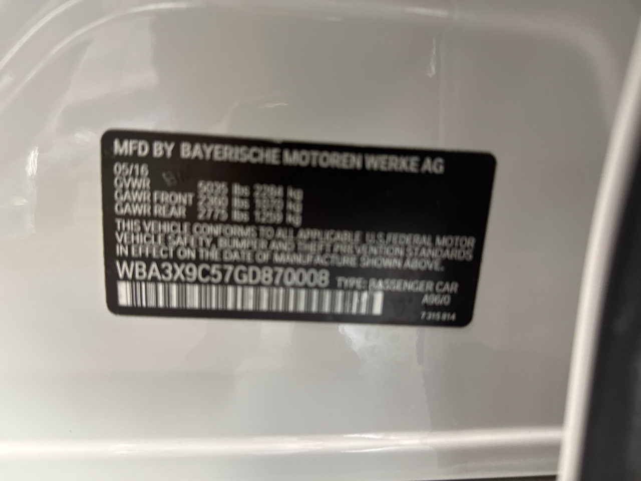Vehicle Inquiry for 2016 BMW 3-Series Gran Turismo 335i xDrive