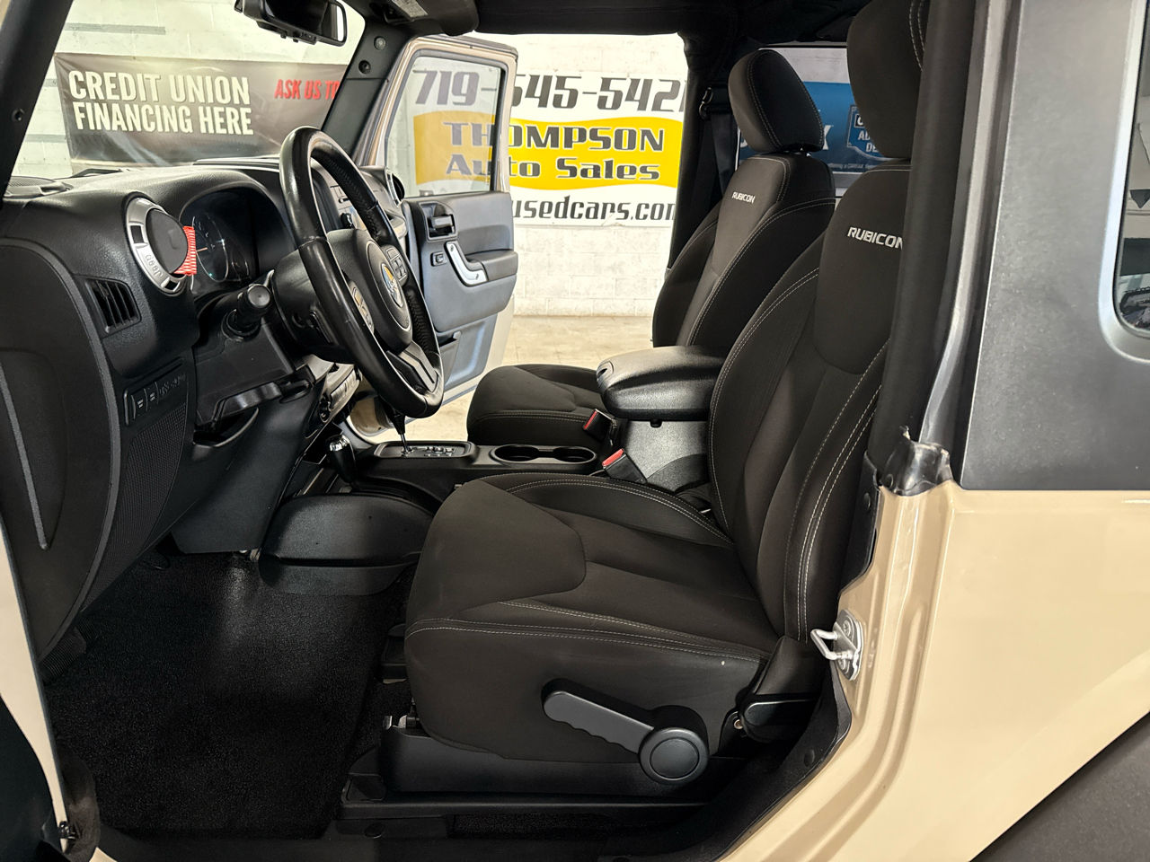 Sharp Must See Trail Rated!! 2016 Jeep Wrangler Rubicon 4WD with the powerful and reliable 3.6L V6, automatic, freedom hard top, front and rear differential lockers, sway bar disconnect, Rhino-Rack, and much more with only 64k miles. You can view over 90 photos of this Wrangler Rubicon on our website at PuebloUsedCars.com. The interior of this Wrangler Rubicon is cloth and in excellent shape and all of the power options work properly. The exterior of the Wrangler Rubicon is in excellent shape. Wrap yourself in comfort and style and explore all the Colorado Rockies have to offer in this trail rated Jeep Wrangler Rubicon 4WD. If you want a sharp looking custom Jeep this 2016 Jeep Wrangler Rubicon 4WD will not disappoint. Give us a call with any questions at 719-545-5421 or stop down and see us in person at Thompson Auto Sales - 525 W 5th St in Pueblo, CO.